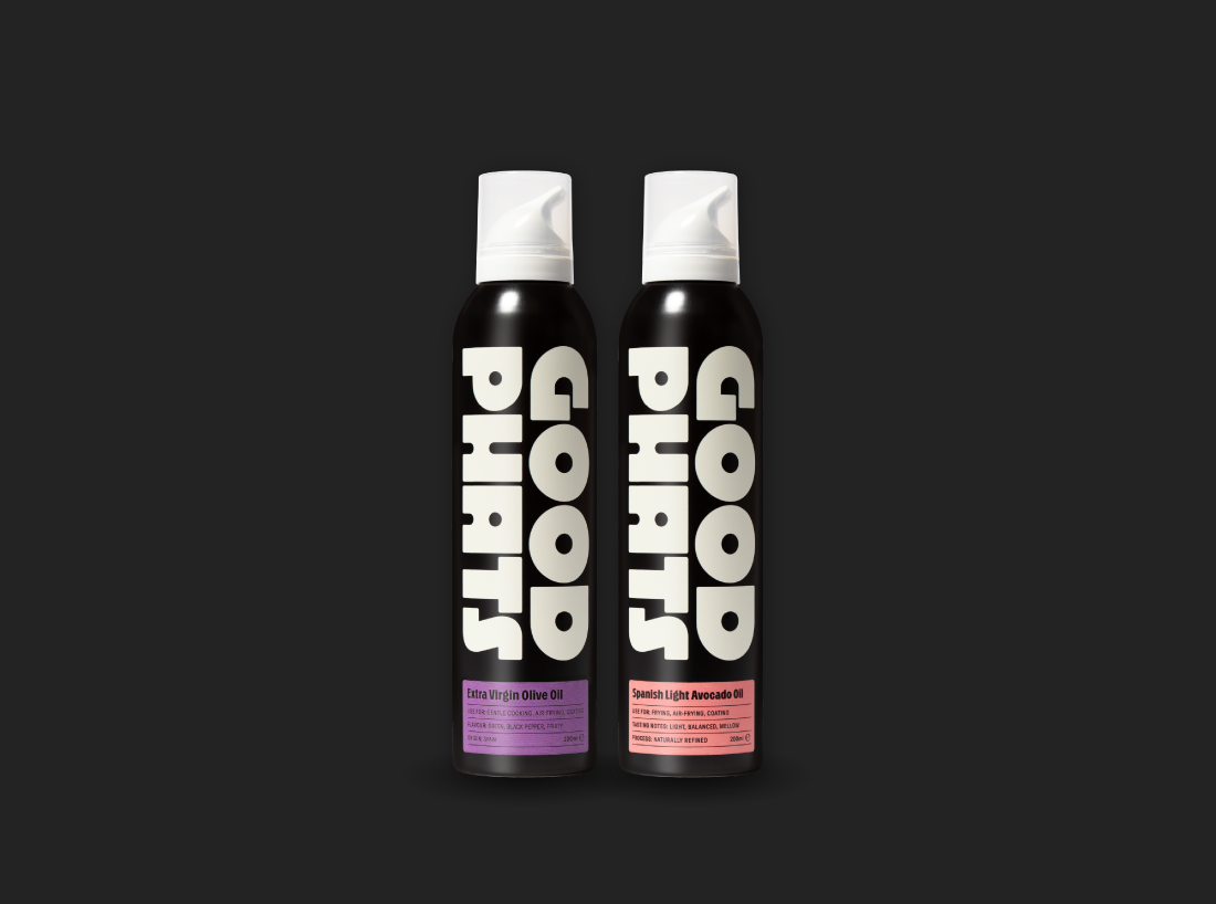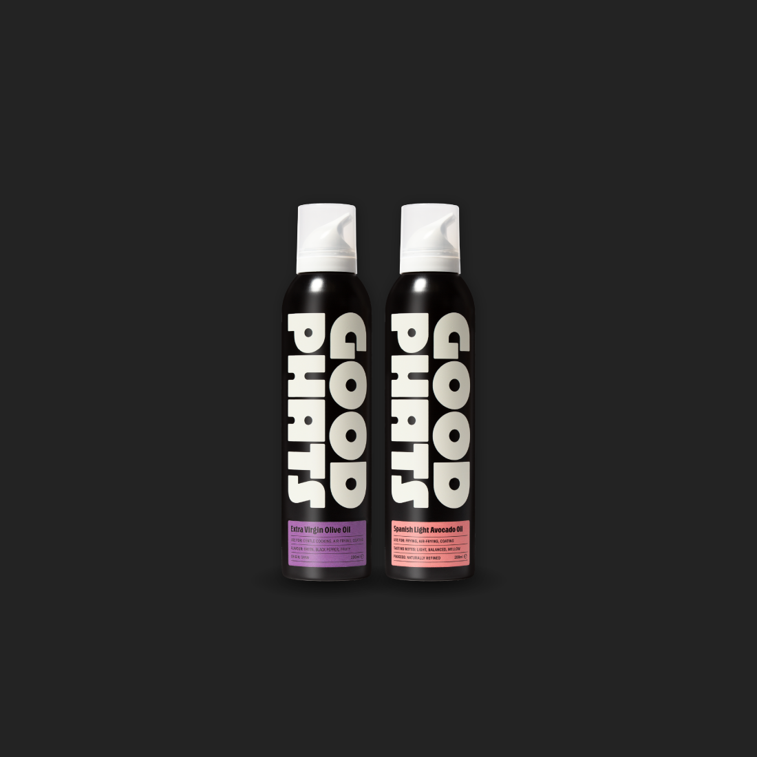Introducing the GOOD PHATS Oil Spray Set, featuring the perfect duo for all your spritzing, coating, and finishing needs: Spanish Light Avocado Oil Spray and Spanish Extra Virgin Olive Oil Spray. Made with 100% pure oils and absolutely no fillers, emulsifiers, or seed oils, these sprays bring precision, flavour, and versatility to your kitchen.