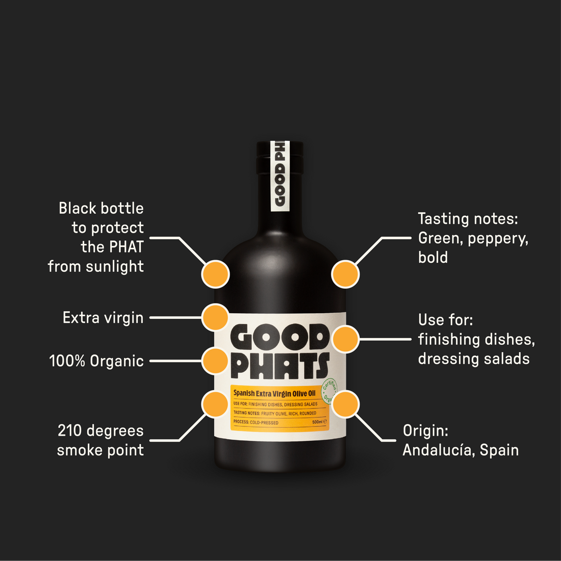 Our Organic Extra Virgin Olive Oil is a real game-changer. With organic olives picked under the warm Andalusian sun, this golden PHAT speaks for itself. Use it when you want to indulge by liberally pouring it over a creamy burrata or finishing some grilled asparagus.